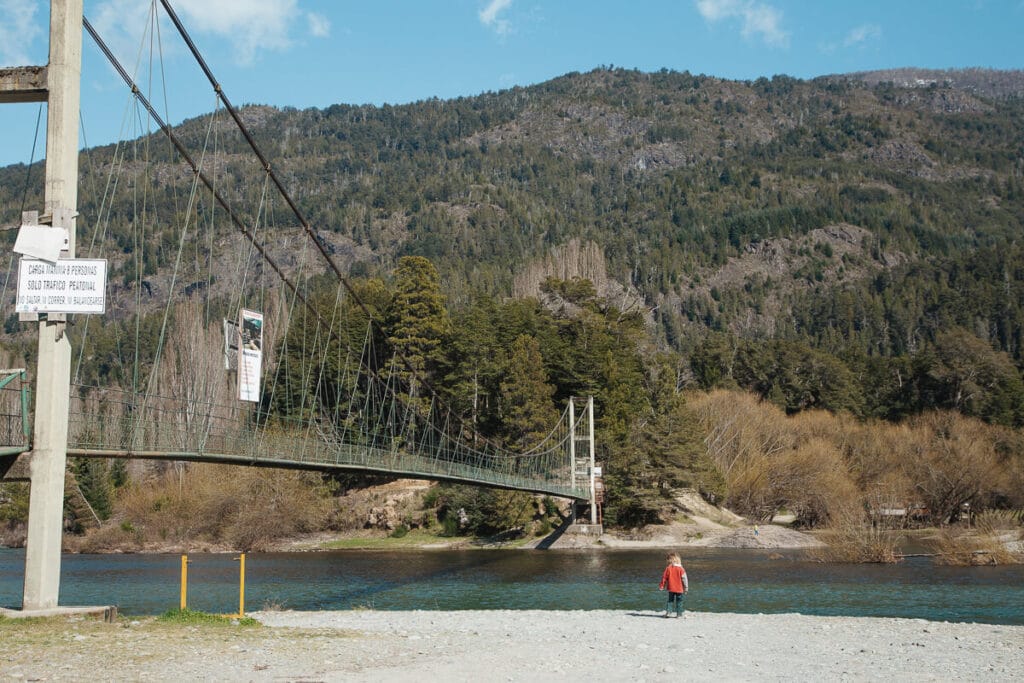 - Las Pataguas – This pasarela is further south, almost to Epuyen. There is a beautiful hosteria here where you can book a room. It’s private property but the footbridge, it’s parking lot and the trail are freely accessible to the public.