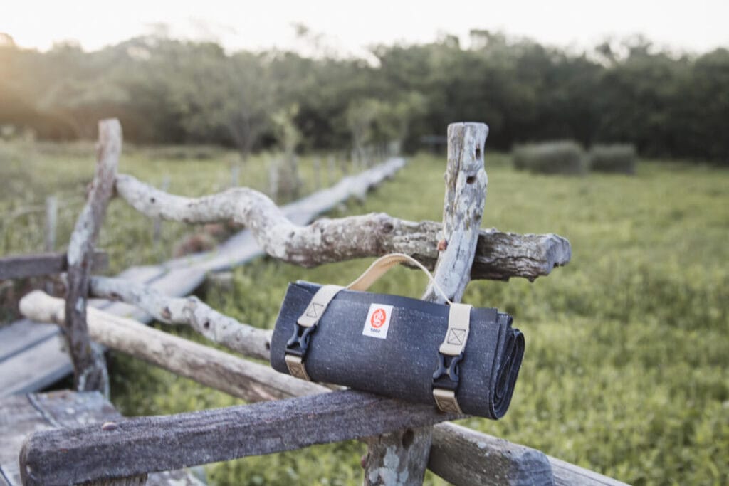 I have two travel MIKKOA mats (researching for this article has turned me into a bit of a travel yoga mat hoarder) but they also offer regular yoga mats and beach towels.