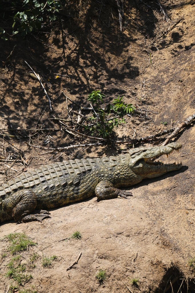 They only take small groups (max 15 people) in a smaller boat. Everyone gets a good view and equally close (just check out the photo below!), as close as one can and should get to a three-meter croc!